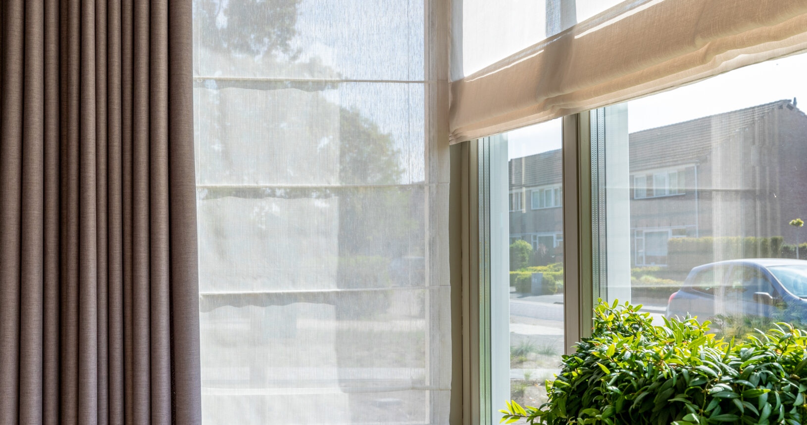 Vouwgordijnen zijn raamdecoratie van stof die zich bij het openen in nette plooien omhoog vouwen. Ze combineren de warme uitstraling van gordijnen met het praktische gebruik van een rolgordijn, waardoor je eenvoudig licht en privacy kunt regelen.